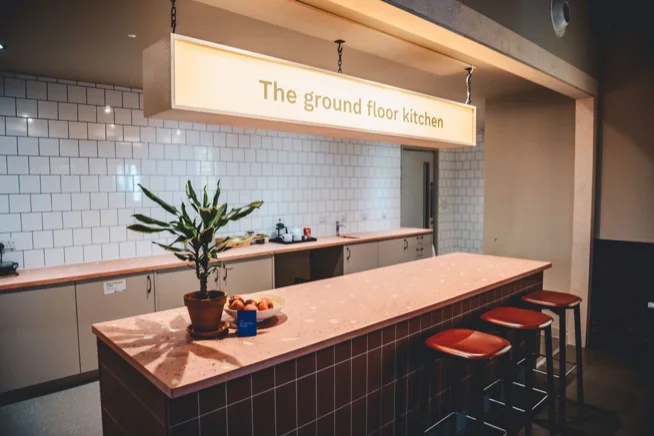 Communal Tables: Large communal tables designed to promote collaboration and teamwork.
